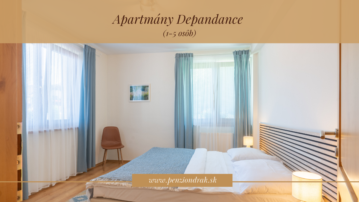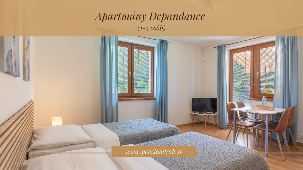 Penzión a apartmány Drak je rodinne vedené ubytovanie v obci Demänová pri Liptovskom Mikuláši, ktoré spája pohostinnosť, pokoj prírody a moderný komfort v srdci Liptova – jednej z najpopulárnejších turistických oblastí Slovenska. Jeho názov je inšpirovaný legendou o drakovi z Demänovskej doliny – a práve táto atmosféra tradícií a dobrodružstva sa odráža v celkovom zážitku z pobytu. Ponúka štýlové izby a apartmány, hostia môžu využiť reštauráciu s kreatívnou kuchyňou, kde sa servírujú jedlá z čerstvých lokálnych surovín, a taktiež wellness & spa zónu s možnosťou relaxu vo vírivke, saune či parnom kúpe (Fínska sauna, Parný bylinkový kúpeľ, masážny vírivý bazén HotSpring, Oddychová miestnosť, Wellness procedúry a masáže). Súčasťou ubytovania je recepcia, spoločné priestory a parkovanie monitorované kamerovým systémom priamo pri objekte. Hostia majú k dispozícii aj úschovňu lyží a bicyklov a detský kútik. Pobyt v penzióne je tak pohodlný aj pre rodiny s deťmi a aktívnych hostí.